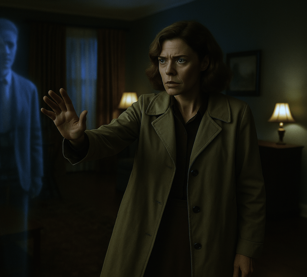 Janet Franklin is the Head of an Institute in Connecticut that studies paranormal activity. She has just written a book on her findings, and is ready to promote it around the country.
