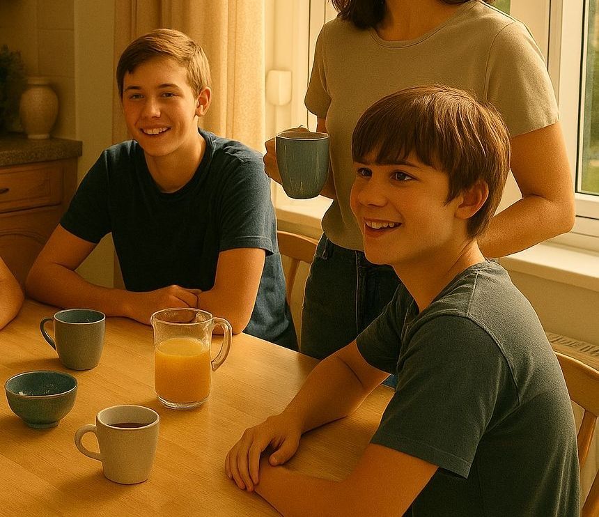 Summer smiles at the boys’ behaviour, and watches as they leave the dining table and head to the door.